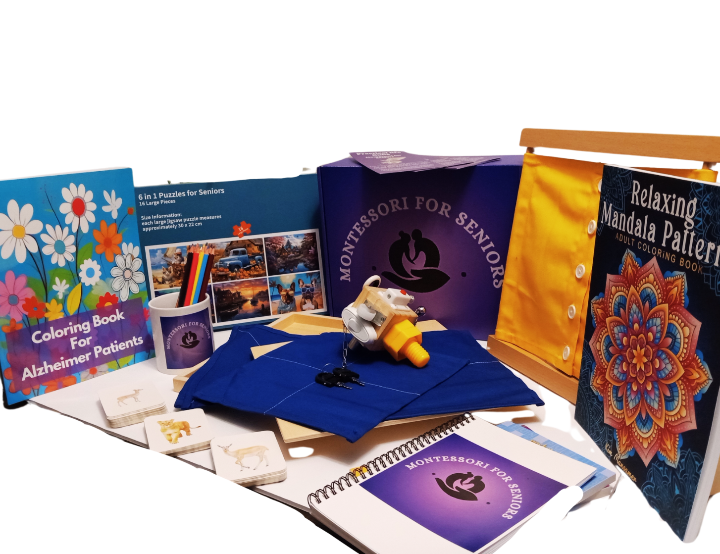 Bilingual Kit curated to improve and maintain seniors quality of life by enhancing all forms of sensory stimulation through Montessori activities.